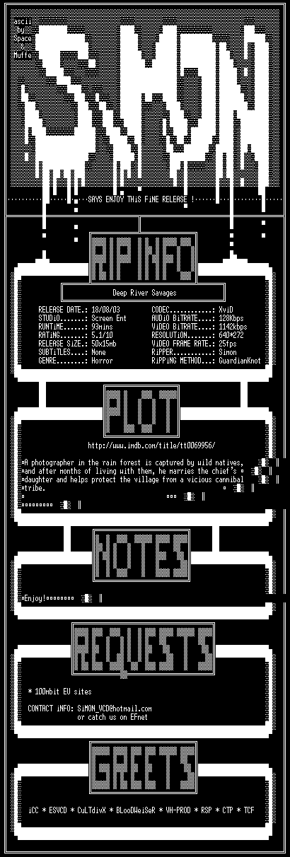 | FiLENAME: | Deep.River.Savages.1972.DVDRip.XviD-SiMON.avi |