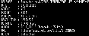 | FiLENAME: | Burn.Notice.S07E03.GERMAN.720P.WEB.X264-WAYNE.mkv |
