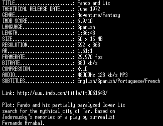| FiLENAME: | Fando.And.Lis.1968.DVDRip.XViD-RPS.avi |