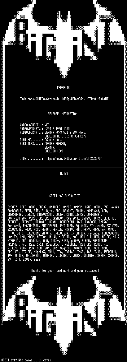 | FiLENAME: | Tidelands.S01E08.German.DL.1080p.WEB.x264.iNTERNAL-BiGiNT.mkv |