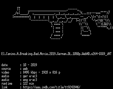 | FiLENAME: | El.Camino.A.Breaking.Bad.Movie.2019.German.DL.1080p.WebHD.x264-GSG9_iNT.mkv |