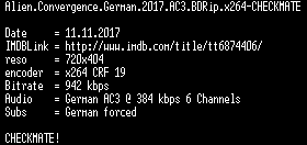 | FiLENAME: | Alien.Convergence.German.2017.AC3.BDRip.x264-CHECKMATE.mkv |