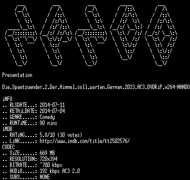 | FiLENAME: | Die.Spaetzuender.2.Der.Himmel.soll.warten.German.2013.AC3.DVDRiP.x264-NANDO.mkv |