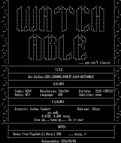 | FiLENAME: | Der.Balken.2001.GERMAN.DVDRIP.X264-WATCHABLE.mkv |