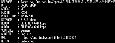 | FiLENAME: | James.May.Our.Man.In.Japan.S01E01.GERMAN.DL.DOKU.720P.WEB.H264-WAYNE.mkv |