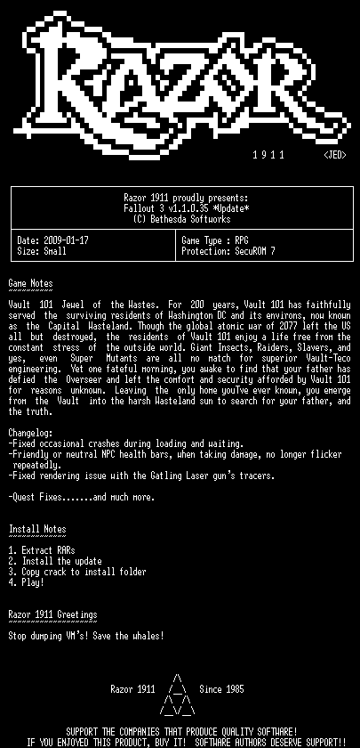 | FiLENAME: | Fallout 3 v1.1.0.35 Update-RazorDOX.rar |