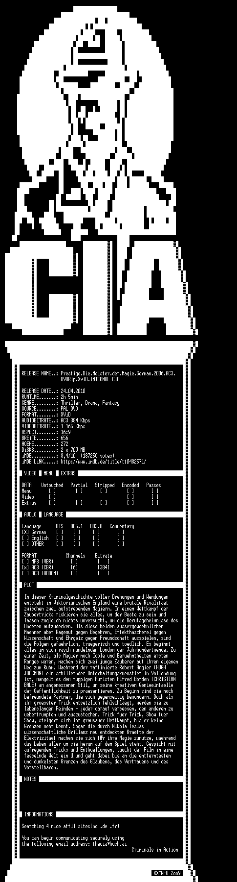 | FiLENAME: | Prestige.Die.Meister.der.Magie.German.2006.AC3.DVDRip.XviD.iNTERNAL-CiA.CD1.avi |
