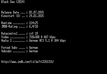 | FiLENAME: | Black.Sea.German.2014.AC3.BDRiP.x264-EXQUiSiTE.mkv |
