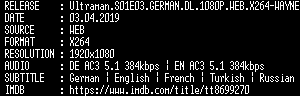 | FiLENAME: | Ultraman.S01E03.GERMAN.DL.1080P.WEB.X264-WAYNE.mkv |