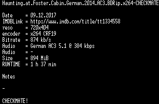 | FiLENAME: | Haunting.at.Foster.Cabin.German.2014.AC3.BDRip.x264-CHECKMATE.mkv |
