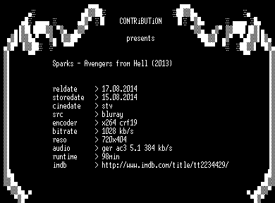 | FiLENAME: | Sparks.Avengers.from.Hell.2013.German.BDRip.x264-CONTRiBUTiON.mkv |