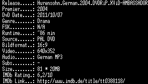 | FiLENAME: | Hurensohn.German.2004.DVDRiP.XViD-AMBASSADOR.avi |