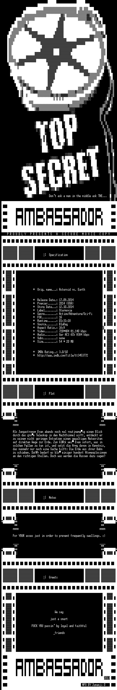 | FiLENAME: | Asteroid.vs.Earth.GERMAN.2014.BDRIP.X264-AMBASSADOR.mkv |