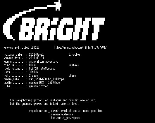 | FiLENAME: | Gnomeo.und.Julia.German.720p.BluRay.x264.REPACK-BRiGHT.mkv |