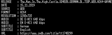 | FiLENAME: | The.Man.In.The.High.Castle.S04E08.GERMAN.DL.720P.WEB.H264-WAYNE.mkv |