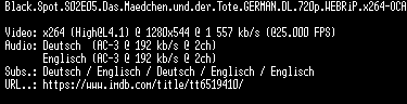 | FiLENAME: | Black.Spot.S02E05.Das.Maedchen.und.der.Tote.GERMAN.DL.720p.WEBRiP.x264-OCA.mkv |