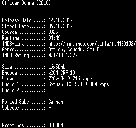 | FiLENAME: | Officer.Downe.German.2016.AC3.BDRip.x264-SPiCY.mkv |