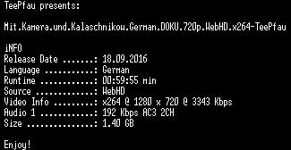 | FiLENAME: | Mit.Kamera.und.Kalaschnikow.German.DOKU.720p.WebHD.x264-TeePfau.mkv |