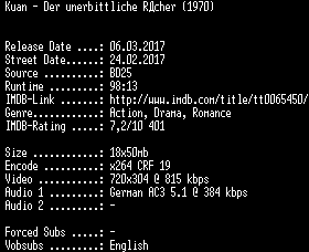 | FiLENAME: | Kuan.Der.unerbittliche.Raecher.German.REMASTERED.1972.AC3.BDRip.x264-SPiCY.mkv |