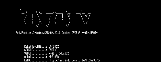 | FiLENAME: | Red.Faction.Origins.GERMAN.2011.Dubbed.DVDRiP.XviD-iNFOTv.avi |