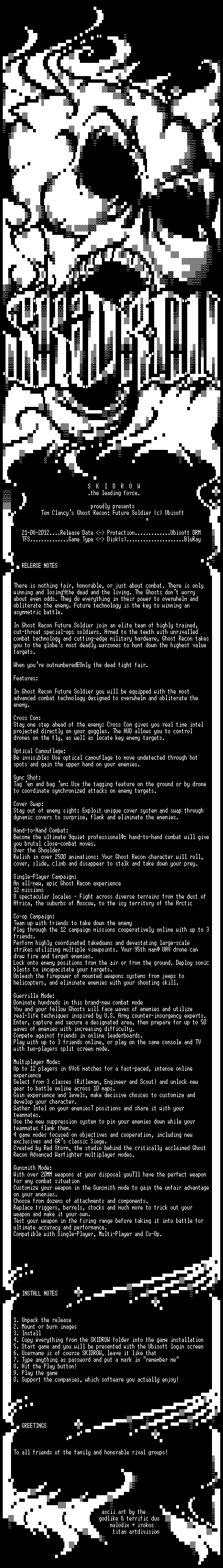 | FiLENAME: | Tom.Clancys.Ghost.Recon.Future.Soldier-SKIDROW.iso |