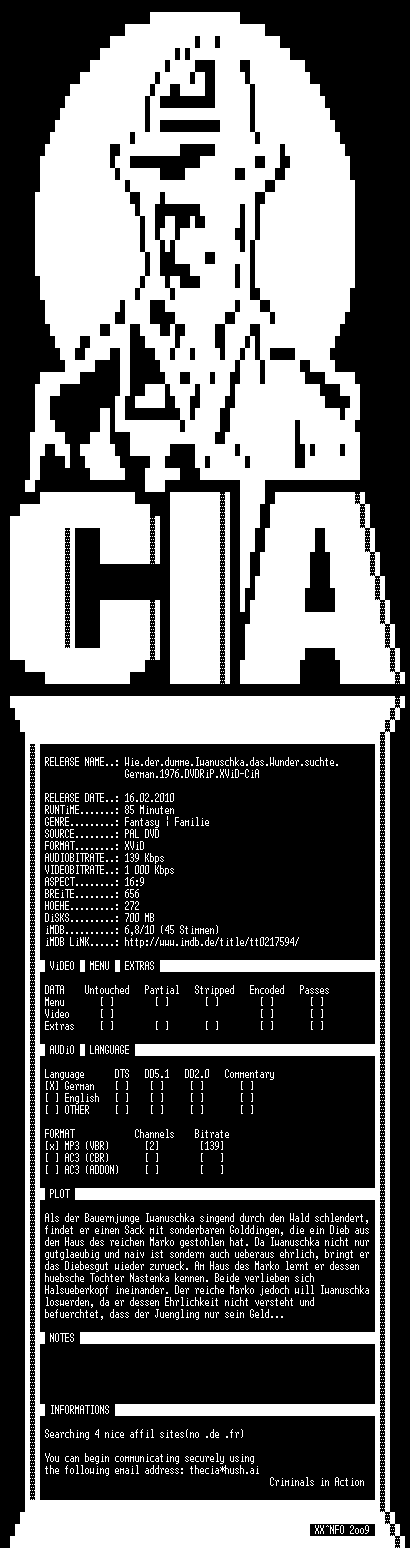| FiLENAME: | Wie.der.dumme.Iwanuschka.das.Wunder.suchte.German.1976.DVDRiP.XViD-CiA.avi |