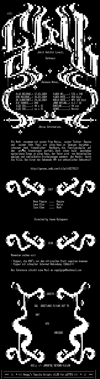 | FiLENAME: | Darkness.German.DVDRiP.XviD-GWL.avi |