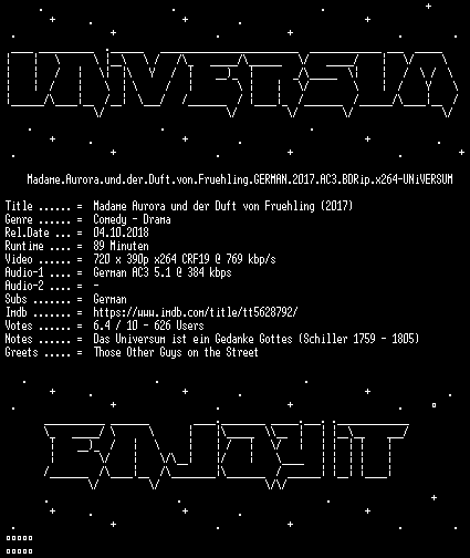 | FiLENAME: | Madame.Aurora.und.der.Duft.von.Fruehling.GERMAN.2017.AC3.BDRip.x264-UNiVERSUM.mkv |