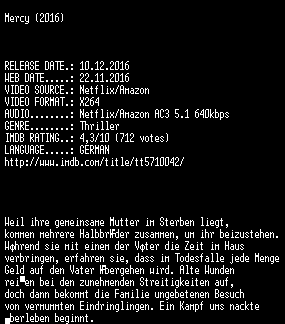 | FiLENAME: | Mercy.2016.German.720p.WebHD.x264-SLG.mkv |