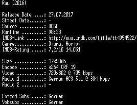 | FiLENAME: | Raw.German.2016.AC3.BDRip.x264-SPiCY.mkv |