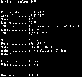 | FiLENAME: | Der.Mann.aus.Alamo.German.REMASTERED.1953.AC3.BDRip.x264-SPiCY.mkv |