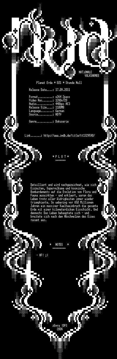 | FiLENAME: | Planet.Erde.E01.Stunde.Null.GERMAN.DOKU.AC3.HDTV.720p.x264-NVA.mkv |