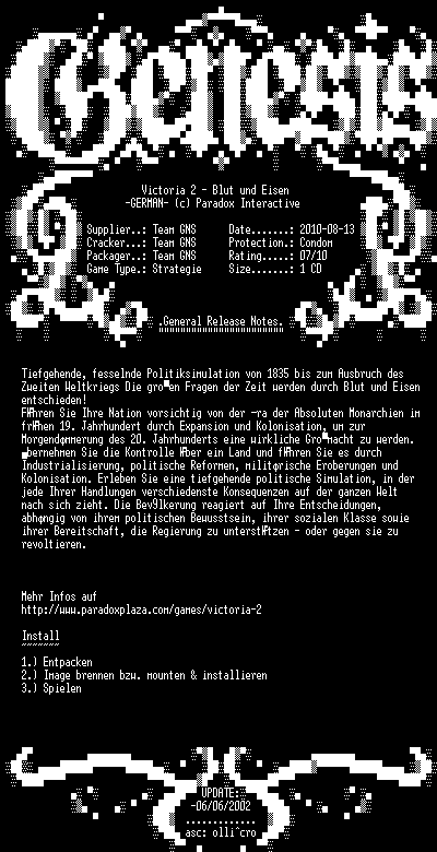 | FiLENAME: | Victoria.2.Blut.und.Eisen.GERMAN-GENESIS.bin |