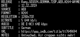 | FiLENAME: | Ramy.S01E04.GERMAN.720P.WEB.H264-WAYNE.mkv |