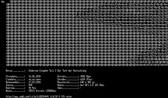 | FiLENAME: | Undersea.Kingdom.Teil.2.Der.Turm.der.Vernichtung.1936.German.DVDRip.x264-LizardSquad.mkv |