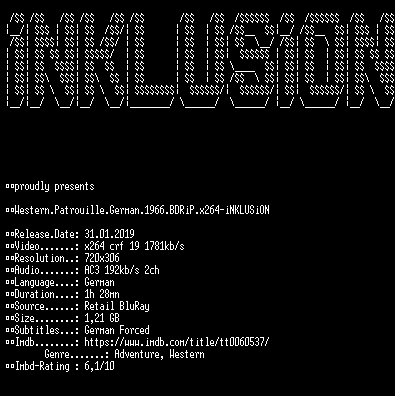 | FiLENAME: | Western.Patrouille.German.1966.BDRiP.x264-iNKLUSiON.mkv |