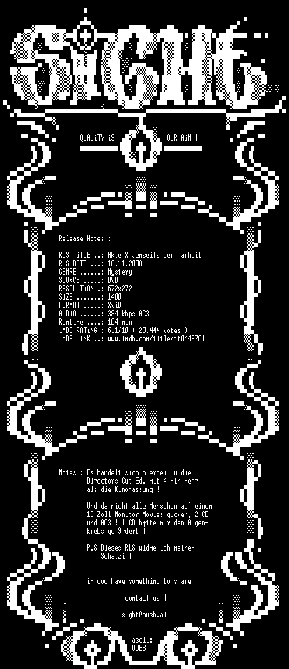 | FiLENAME: | Akte X - Jenseits der Wahrheit (2008) [GER-AC3 WS DVD] CD1.avi |