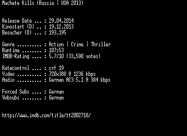| FiLENAME: | Machete.Kills.German.BDRiP.x264-EXQUiSiTE.mkv |
