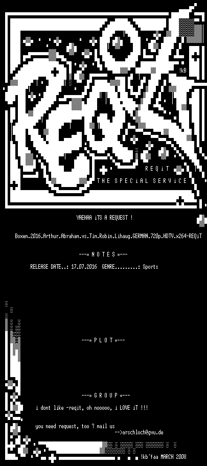 | FiLENAME: | Boxen.2016.Arthur.Abraham.vs.Tim.Robin.Lihaug.GERMAN.720p.HDTV.x264-REQiT.mkv |