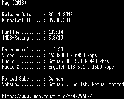 | FiLENAME: | Meg.2018.German.DL.1080p.BluRay.x264-COiNCiDENCE.mkv |