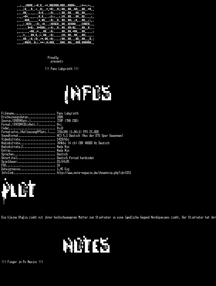 | FiLENAME: | ZZZ.Pans.Labyrinth.2006.German.HDRip.AC3.XviD-Safire.avi |