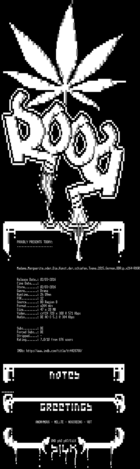 | FiLENAME: | Madame.Marguerite.oder.Die.Kunst.der.schiefen.Toene.German.BDRip.x264-ROOR.mkv |