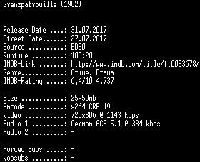 | FiLENAME: | Grenzpatrouille.German.REMASTERED.1982.AC3.BDRip.x264-SPiCY.mkv |