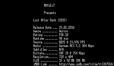 | FiLENAME: | Lost.After.Dark.German.2015.AC3.BDRip.x264-MOViEiT.mkv |