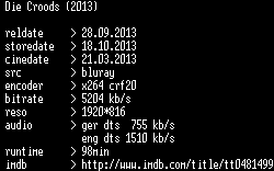 | FiLENAME: | Die.Croods.2013.German.DL.1080p.BluRay.x264-CONTRiBUTiON.mkv |
