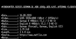 | FiLENAME: | MINDHUNTER.S02E03.GERMAN.DL.HDR.1080p.WEB.h265.iNTERNAL-EiSBOCK.mkv |