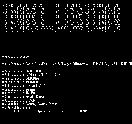 | FiLENAME: | Die.Schtis.in.Paris.Eine.Familie.auf.Abwegen.2018.German.1080p.BluRay.x264-iNKLUSiON.mkv |