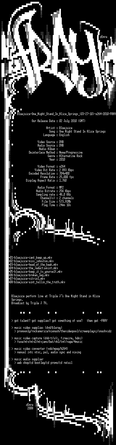 | FiLENAME: | Bluejuice-One_Night_Stand_In_Alice_Springs_(03-27-10)-x264-2010-FRAY.rar |