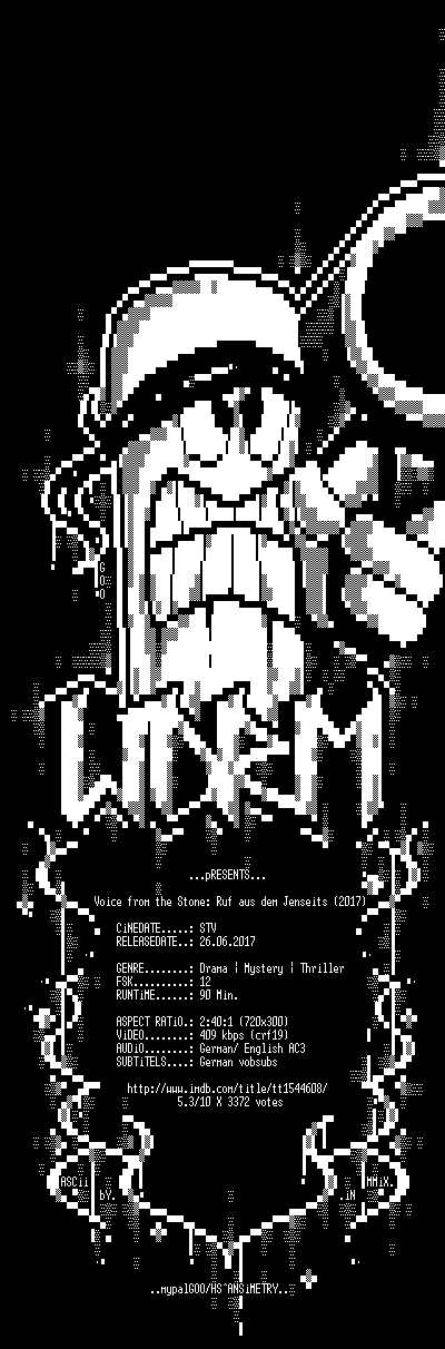 | FiLENAME: | Voice.from.the.Stone.Ruf.aus.dem.Jenseits.2017.German.DL.BDRiP.x264-w0rm.mkv |