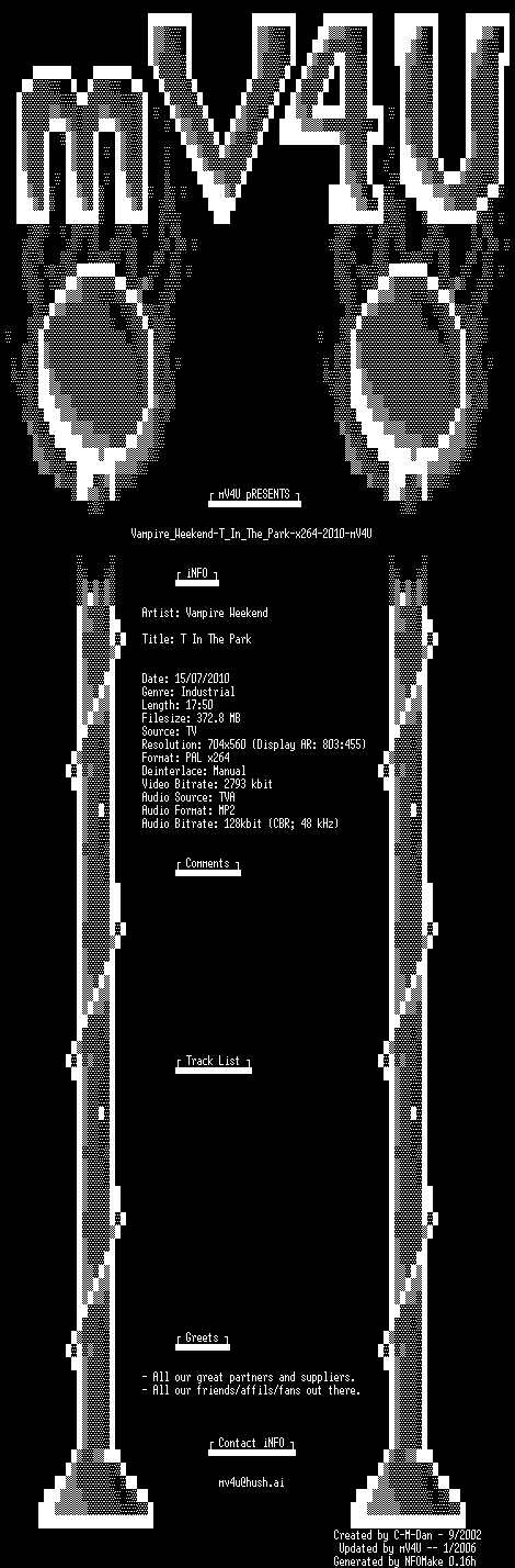 | FiLENAME: | Vampire_Weekend-T_In_The_Park-x264-2010-mV4U.mkv |